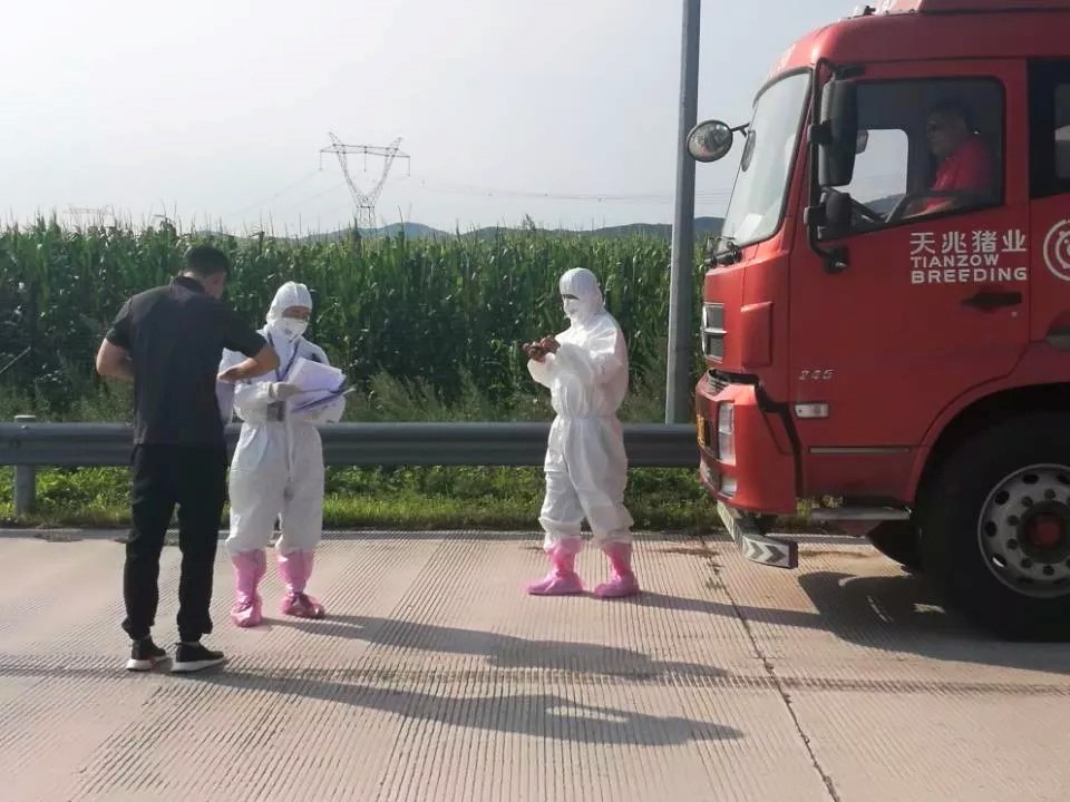 此外,為了確保在非洲豬瘟肆虐的環(huán)境下,保證法系原種豬成功入駐,勃利天兆也進行了萬無一失的準備。事前對場地與裝運車輛進行三次清洗消毒與高溫烘干,并進行全面檢測。運輸過程不停車、司機全程不下車。為保證種豬疫病防控安全,勃利縣動物防疫監(jiān)督工作人員現(xiàn)場辦公進行查證驗物,并監(jiān)督消毒。轉(zhuǎn)運完成后,經(jīng)檢測從場區(qū)周邊環(huán)境到豬只健康全部達標。