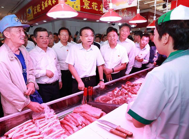 (李克強總理在哈爾濱菜市場詢問豬價 圖源中國政府網(wǎng))