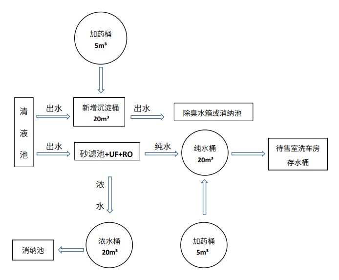 5. 反滲透出水口(純水和濃水)增加蓄水桶(20m3),材質(zhì)PE,要求配置強(qiáng)排泵和凈水池消毒投加設(shè)備,排泥管道接入甲方現(xiàn)有的污泥濃縮池。